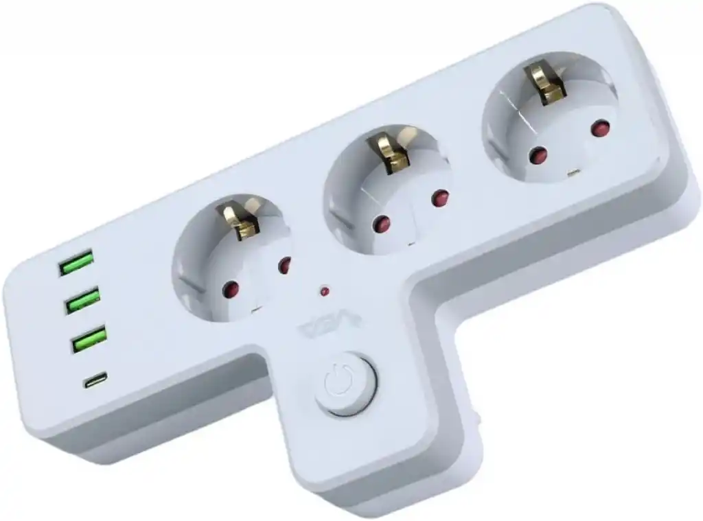 Grup Priz – 10 Amper 2500 Watt, Isıya Dayanıklı, Termal Koruma, 3 USB ve 1 Type-C Çıkışlı, Çocuk Koruması, Anahtarlı (3'lü Diktörtgen Priz, 3 USB + 1 Type-C)